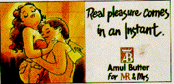 There are stories about the butter that people like to relate over cups of tea. "For over 10 years I have been collecting Amul ads. I especially like the ads on the backs of the butter packets, "says Mrs. Sumona Varma. What does she do with these ads? "I have made an album of them to amuse my grandchildren," she laughs. "They are almost part of our culture, aren't they? My grandchildren are already beginning to realise that these ads are not just a source of amusement. They make them aware of what is happening around them."